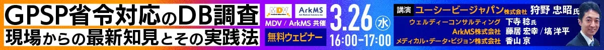 2025年3月26日(水)16:00から17:00にかけて、製薬会社や医療機器メーカーに所属する方々を対象としたWebセミナーが開催されます。このセミナーでは、製造販売後のデータベース調査について、具体的な事例を通じて重要なポイントが紹介されます。
