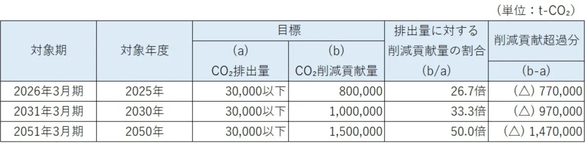 2022年には、カーボンニュートラルへの強い意志を示すため、カーボンネガティブとして150,000t-CO₂、さらには2050年には1,000,000t-CO₂を削減する目標を設定しました。この目標が2025年3月期までに達成されたことで、新たに1,500,000t-CO₂という高い目標を設定し、2030年にはこの数値を800,000t-CO₂と保守的に見込むことにしています。