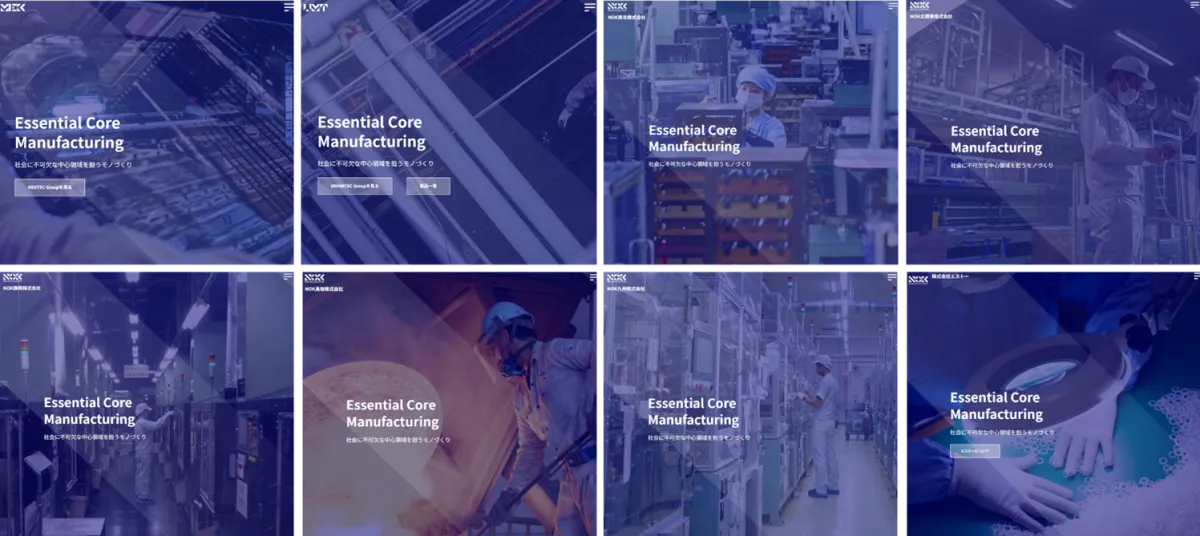 NOKグループは「Global One NOK」というビジョンのもとに、グループ全体での業務を推進しています。このたびのサイトリニューアルでは、各社の情報がナビゲーションと視覚的なデザインを通じてシームレスに統合され、訪問者がグループ全体を一望できる設計がなされています。具体的には、グループ各社のサイトには、以下の企業が含まれています。