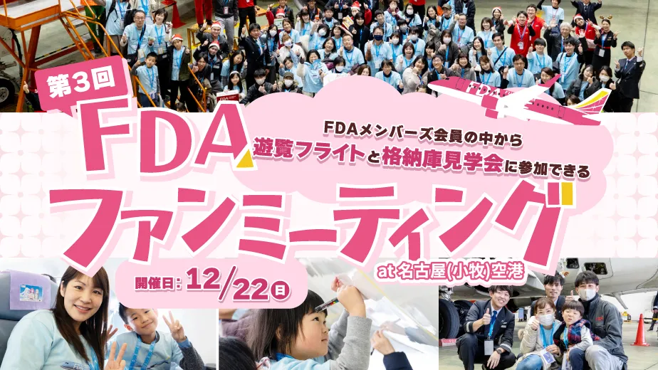 フジドリームエアラインズ(FDA)は、2024年12月22日(日)に、FDAメンバーズ会員限定のイベント「第3回FDAファンミーティング at 名古屋(小牧)空港」を開催いたします。