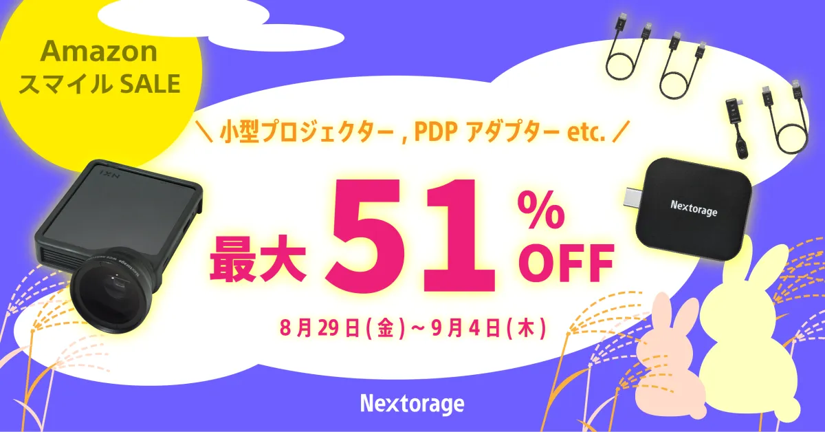 Nextorage株式会社(ネクストレージ)は、2025年8月29日から9月4日までの期間、Amazonで開催されるスマイルSALEに参加することを発表しました。このセールでは、同社の最新の映像関連機器が特別価格で提供され、注目のアイテムが多数揃っています。