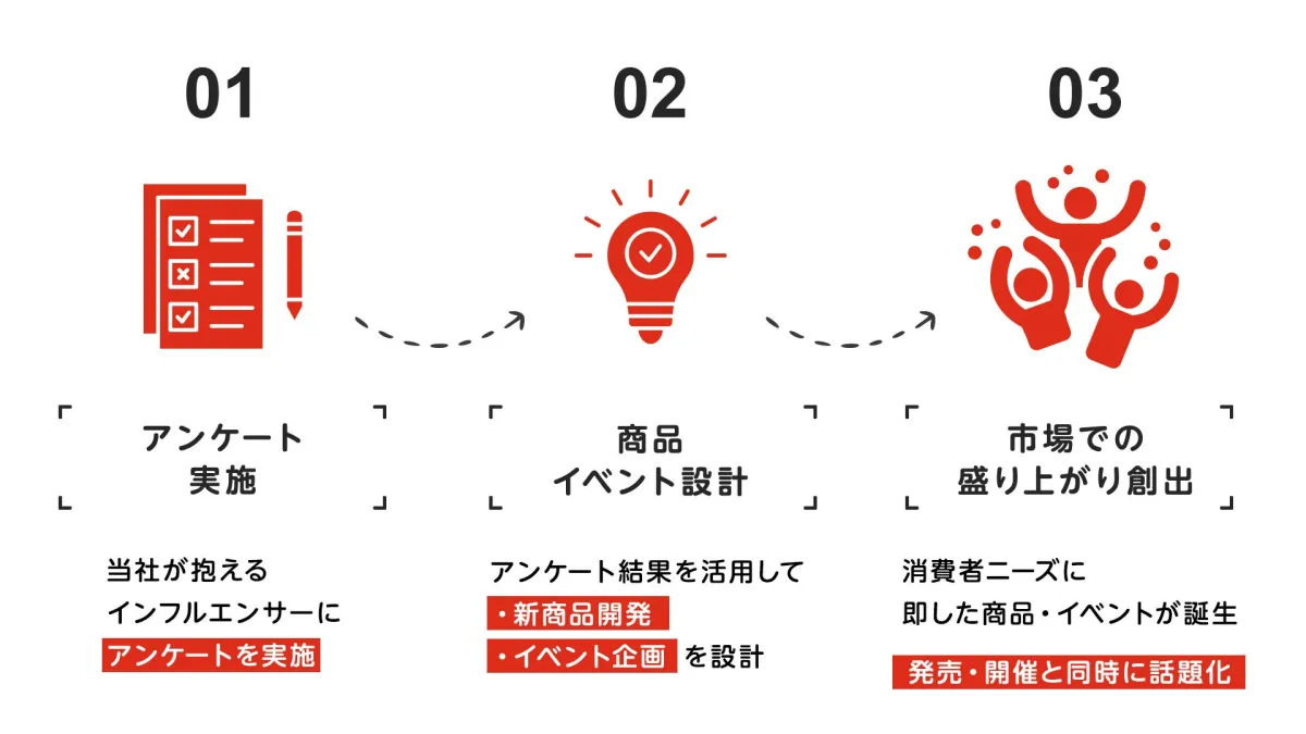 - - 多様なオプション: グループインタビューや1on1インタビュー、レビュー施策など、多様な方法でインフルエンサーからのフィードバックを得ることができます。
