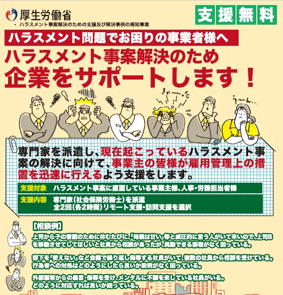令和7年度、厚生労働省はハラスメント事案解決に向けた支援事業を開始しました。この事業では、社会保険労務士を派遣し、企業が直面するハラスメント問題の解決をサポートします。多くの企業がこの問題にどのように対処すべきか悩んでいる中、専門家の助けを求めることが重要です。この支援事業は、具体的な事案に対して専門的なアドバイスを提供し、迅速な雇用管理上の措置を促進することを目的としています。