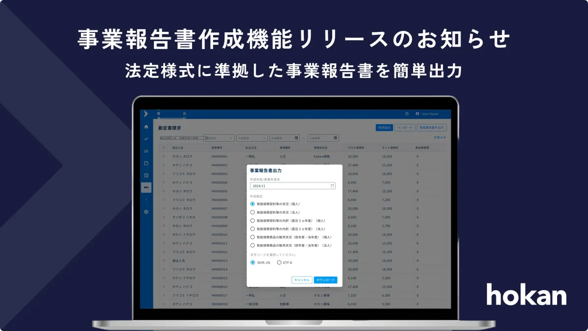 株式会社hokan(ホカン)は、法定様式に準拠した事業報告書が簡単に作成できる新機能を2024年11月から提供開始すると発表しました。この新機能により、保険代理店は複雑な報告書の作成をシンプルにし、法令遵守をより容易にすることができます。