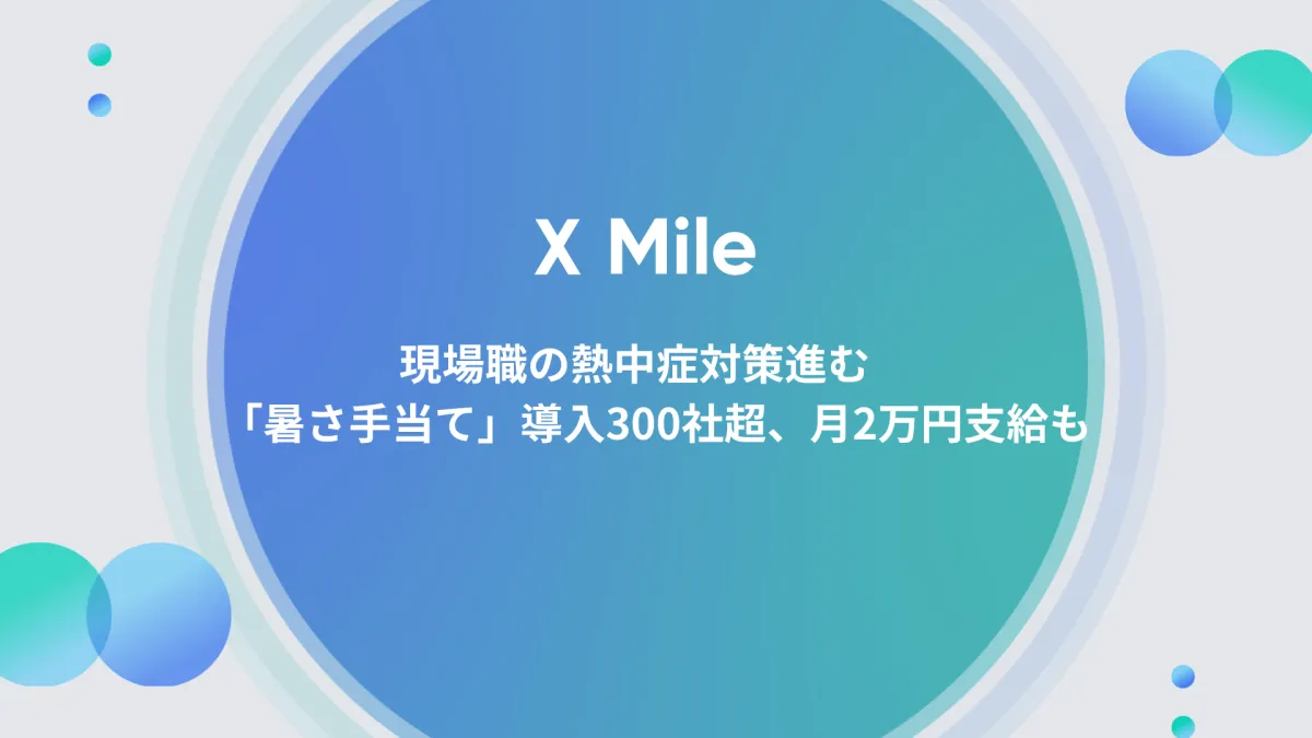 2025年の猛暑が続く中、現場職の労働環境改善が求められています。これに応じて、X Mile株式会社が提供する人材採用システム「クロスワーク」を利用する企業が、熱中症対策として「暑さ手当」を導入しました。導入企業は既に300社を超え、月額2万円を支給するところもあり、今後の展開が期待されています。