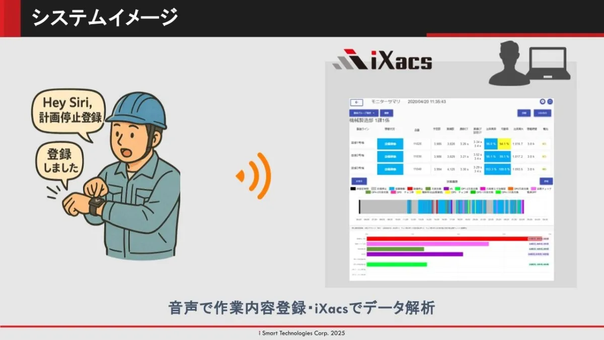 近年、製造業において作業の可視化や効率化が求められる中、i Smart Technologies株式会社は、iXacs(アイザックス)という製造業向けのIoTサービスを提供しています。このたび、音声入力機能を持つスマートウォッチと連携し、作業内容の登録がよりシンプルかつ迅速に行える新機能をスタートしました。