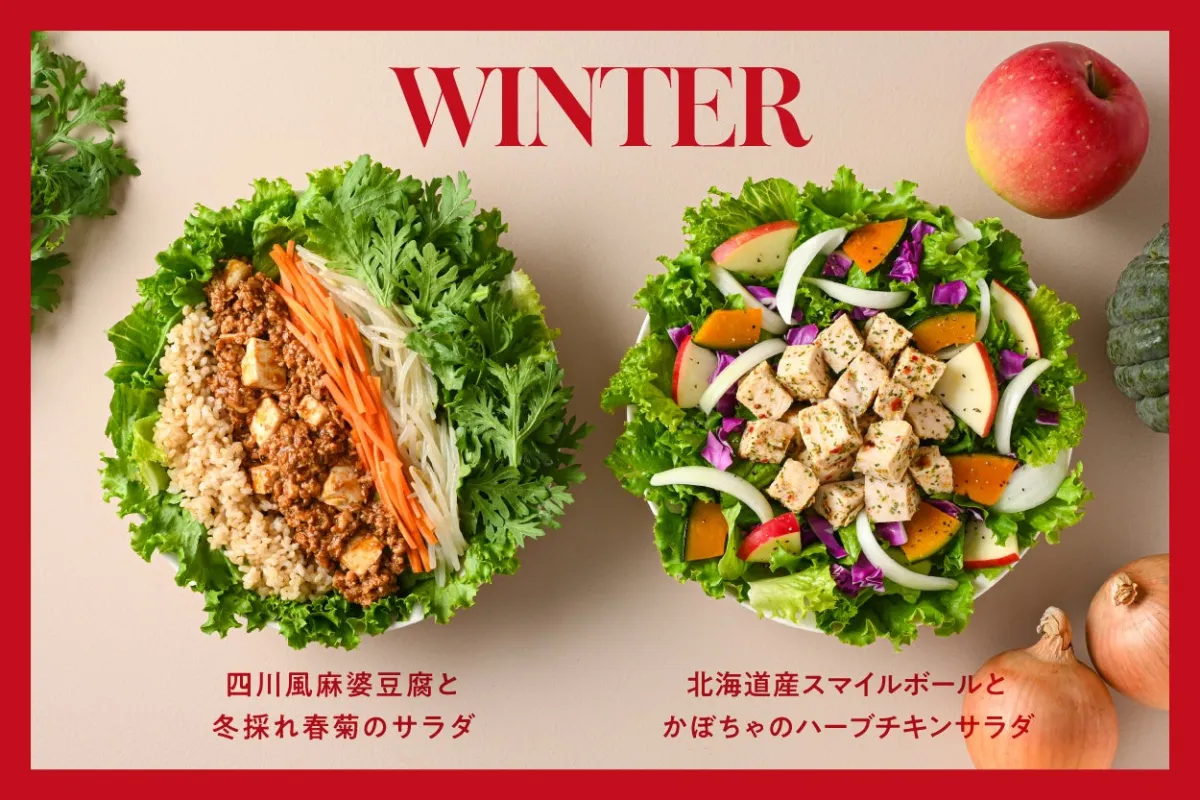 WithGreenが、2025年11月1日から12月31日の期間限定で、全44店舗で新しいサラダメニューを販売します。その名も『四川風麻婆豆腐と冬採れ春菊のサラダ』、そして『北海道産スマイルボールとかぼちゃのハーブチキンサラダ』。これらのサラダは、冬の健康や栄養を意識したコンセプトで、寒い季節にぴったりな一品です。