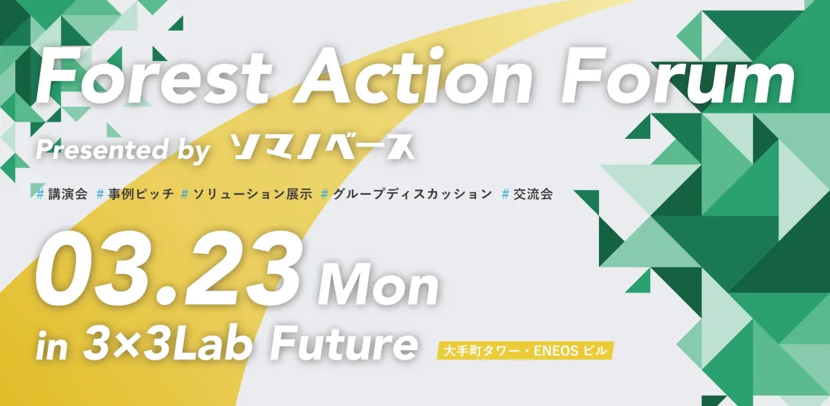 2026年3月23日、大手町の3×3Lab Futureで開催される『Forest Action Forum 2026』は、企業と森林の関係を深める重要なイベントです。土砂災害による人的被害ゼロを目指す株式会社ソマノベースが主催し、サステナビリティや森林保護に関心のある企業担当者を対象に最新の情報や実践事例が共有されます。