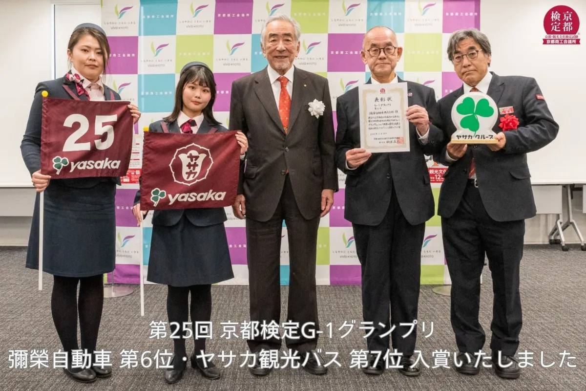 2025年2月28日、京都商工会議所で第25回京都・観光文化検定(通称:京都検定)のG-1グランプリ表彰式が行われ、彌榮自動車株式会社と同じくヤサカ観光バス株式会社がそれぞれ第6位と第7位に輝きました。この結果は、2024年12月8日に行われた京都検定に基づいたもので、企業団体の受験者上位3名の合計点を競う形式で行われます。それぞれの企業から出席した社員たちが、京都検定委員会の納屋嘉人委員長より表彰状を手渡され、特別な瞬間を共有しました。