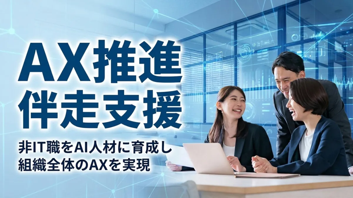 特にこのサービスは、AI研修を実施したが現場での業務改革に繋がっていない企業や、DX推進に遅れをとっておりAXで挽回したい企業、非IT職の社員をAI人材として育成したい企業に非常に有効です。経営層にとってはAI導入の影響を評価・把握し、推進方針を明確にするための良い機会となるでしょう。