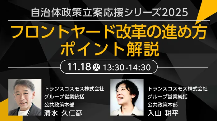 2025年11月18日(火)に、トランスコスモス株式会社が主催する「自治体政策立案応援シリーズ2025 フロントヤード改革の進め方 ポイント解説」がオンラインで開催されます。このセミナーでは、自治体におけるフロントヤード改革の実証事業の成果と、それに基づく改革の戦略について詳しく説明されます。