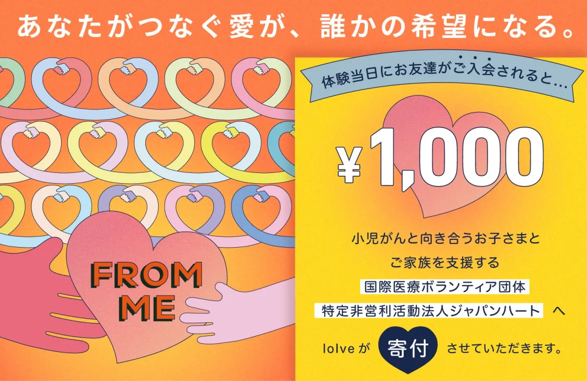 株式会社LIFE CREATE(ライフクリエイト)が運営する女性専用ホットヨガスタジオ「loIve(ロイブ)」は、2024年12月に開催した会員向けイベント「ロイブフェスタ」から得た寄付金を、認定NPO法人ジャパンハートの「スマイルスマイルプロジェクト」に寄付しました。これにより、小児がんと闘うお子様とそのご家族に温かい支援の手が差し伸べられます。