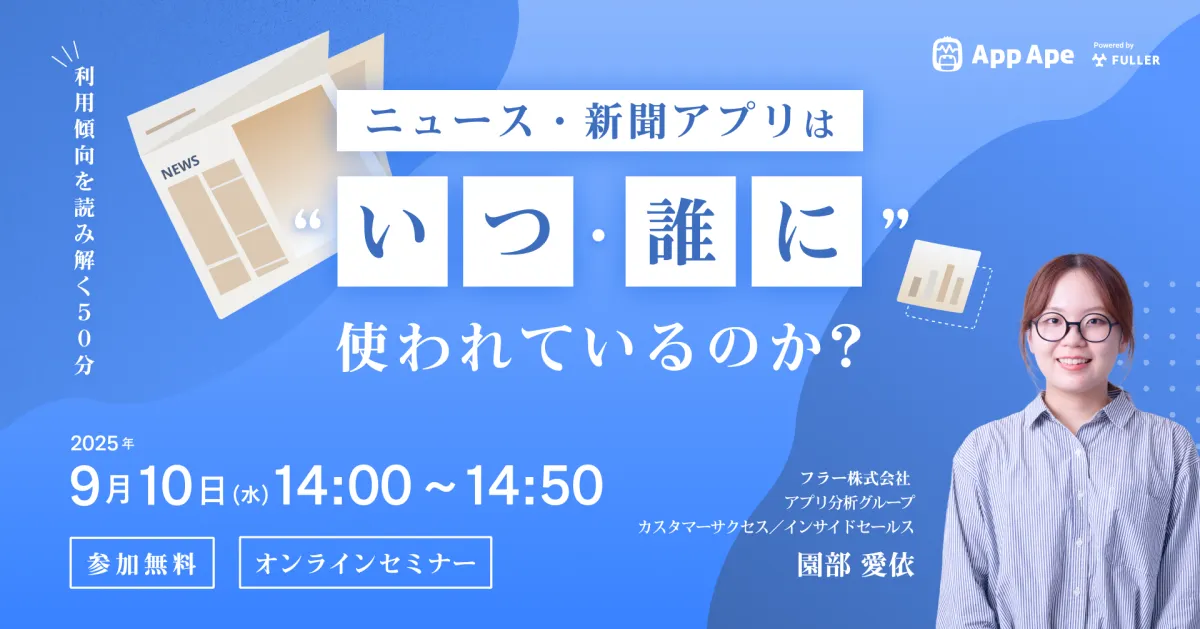 フラー株式会社が主催するオンラインセミナーが、2025年9月10日(水)に開催されることが決定しました。本セミナーでは、ニュース・新聞アプリの利用実態について、特に「いつ」「誰に」このアプリが使われているかを多角的に分析し、参加者に重要な情報を提供します。