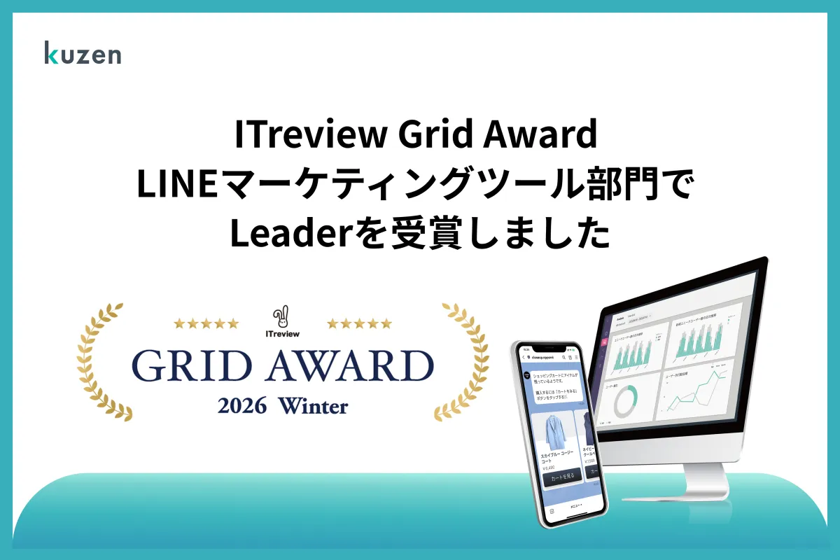 株式会社クウゼンが手がけるLINEマーケティングツール「クウゼン」は、アイティクラウド株式会社の主催する「ITreview Grid Award 2026 Winter」で、最高評価の「Leader」を初めて受賞しました。この受賞は、ユーザーからの高い認識と満足度を基に評価されたもので、クウゼンの実力を公式に認められた結果と言えるでしょう。