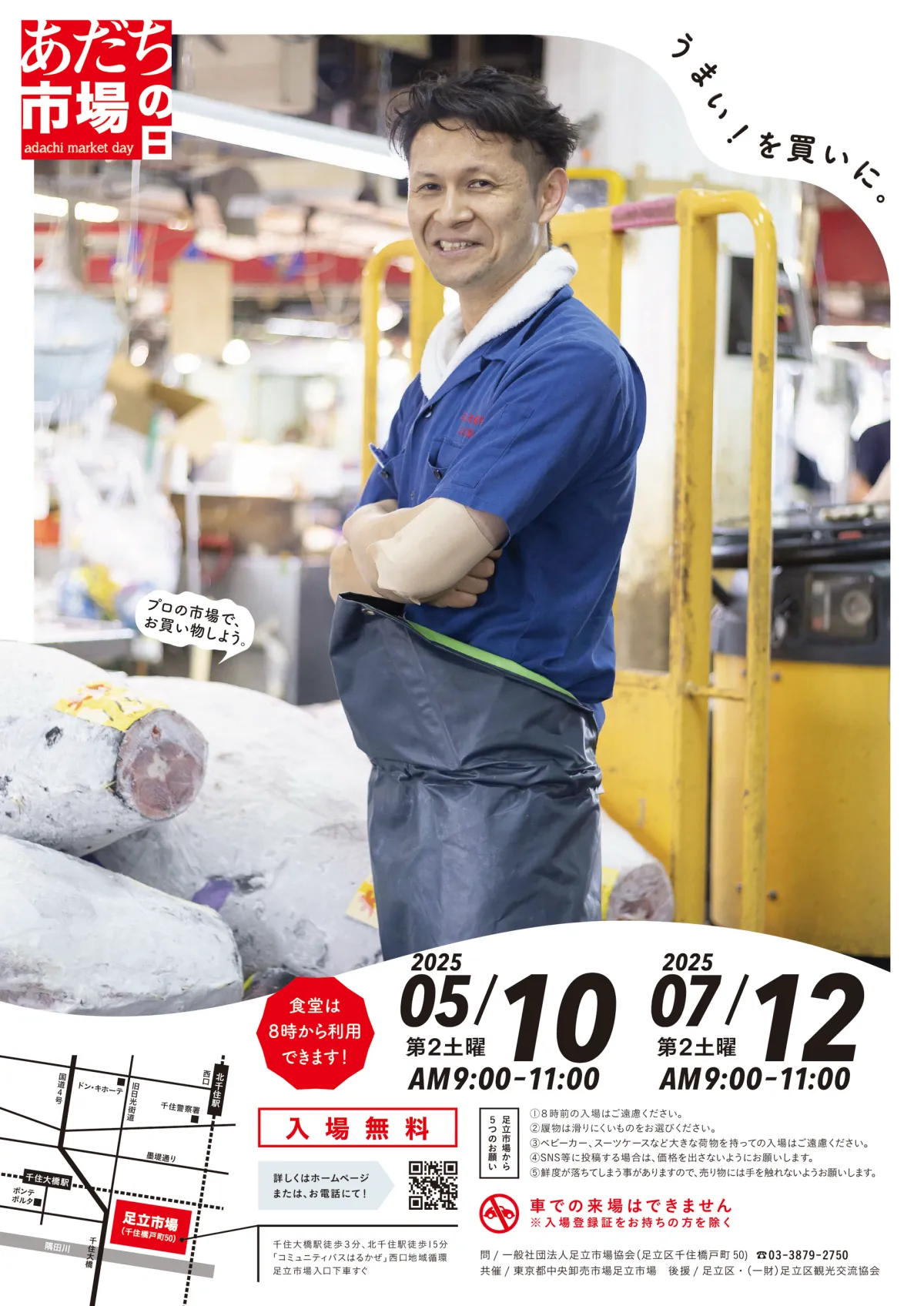 東京都足立区にある「足立市場」は、都内唯一の水産物専門の中央卸売市場です。毎奇数月の第2土曜日、一般の人々にも解放されるこのイベント「#あだち市場の日」は、食の楽しみが詰まった特別な日。次回は2025年5月10日(土)に開催され、午前9時から11時まで一般開放が行われます。