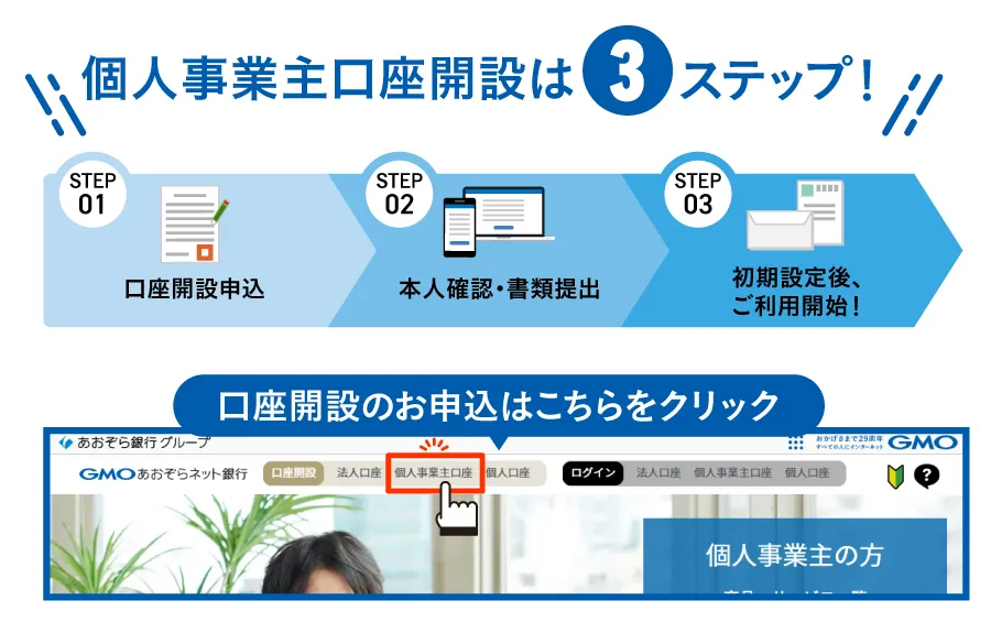 これまで、個人事業主口座の開設には多くの手間がかかりました。個人口座を先に開設し、それから必要な書類を準備して再度申し込むというプロセスに時間がかかるため、口座を早く利用したい事業主にとっては負担も大きかったのです。新サービスでは、このような手続きを大幅に簡素化し、個人事業主口座を第一に開設できるようにしました。