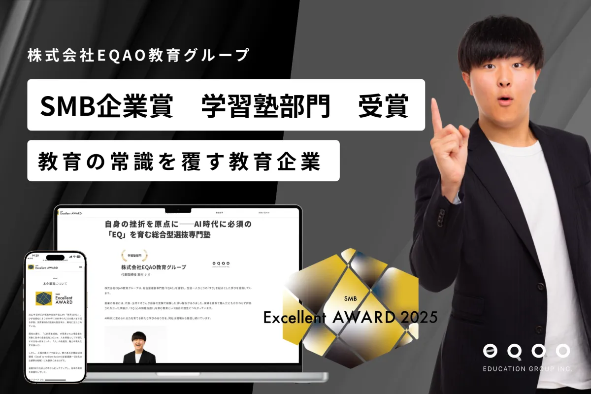 株式会社EQAO教育グループは、この度「SMBエクセレント企業賞」の学習塾部門において、総合型選抜専門塾EQAOがノミネートされたことを発表しました。この賞は中小企業やベンチャー企業が独自性や社会問題への取り組みを評価するもので、EQAOの業界内での取り組みが高く評価されています。