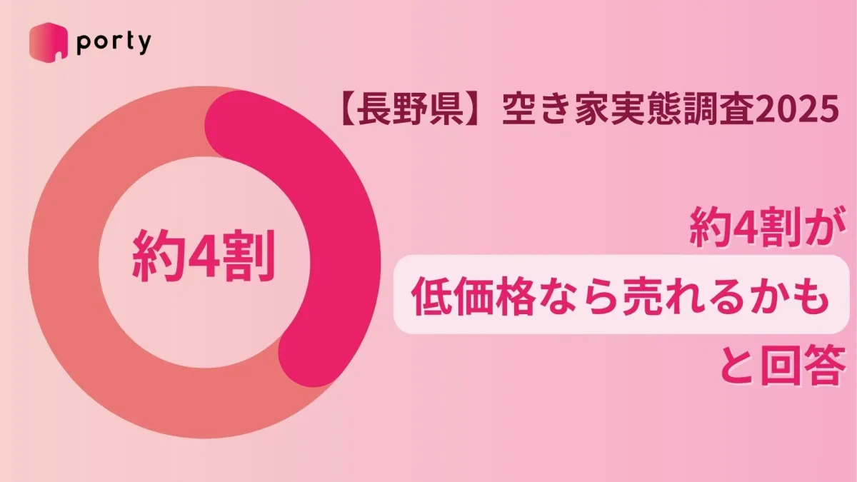 株式会社ポルティが2025年に実施した長野県の空き家売却についての実態調査。対象は空き家を所有するオーナーや相続予定者で、売却を考えている人々です。この調査では、自己の空き家がどれくらい売れるか、またその理由について意見を募りました。