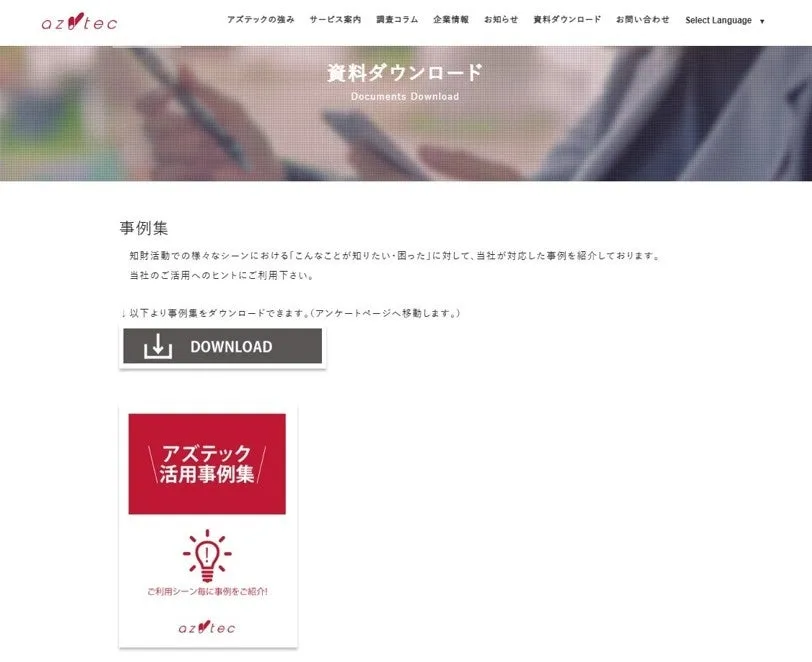 事例集はアズテックの公式サイトから簡単にダウンロード可能です。必要な情報を登録することで、すぐにアクセスできるようになります。より良い知財活動のために、この貴重な資料を是非活用してみてください。