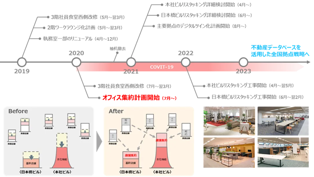 また、テレワークを導入しながら、オフィスのあり方を再定義することに成功し、賃借料の削減と業務効率の向上を同時に達成しています。BIM(Building Information Modeling)を利用した計画のシミュレーションなど、DX施策の導入も行っています。