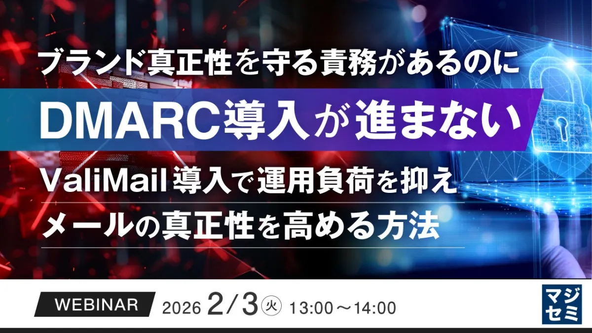 私たちは、ブランドの真正性を守るための重要性が増す中で、なりすましメールへの実効性のある対策を見直すウェビナーを開催します。近年、多くの企業がDMARC(Domain-based Message Authentication, Reporting, and Conformance)やBIMI(Brand Indicators for Message Identification)の導入を進めています。しかし、その実施が期待通りの効果を上げているかどうか、一部では疑問の声も上がっています。