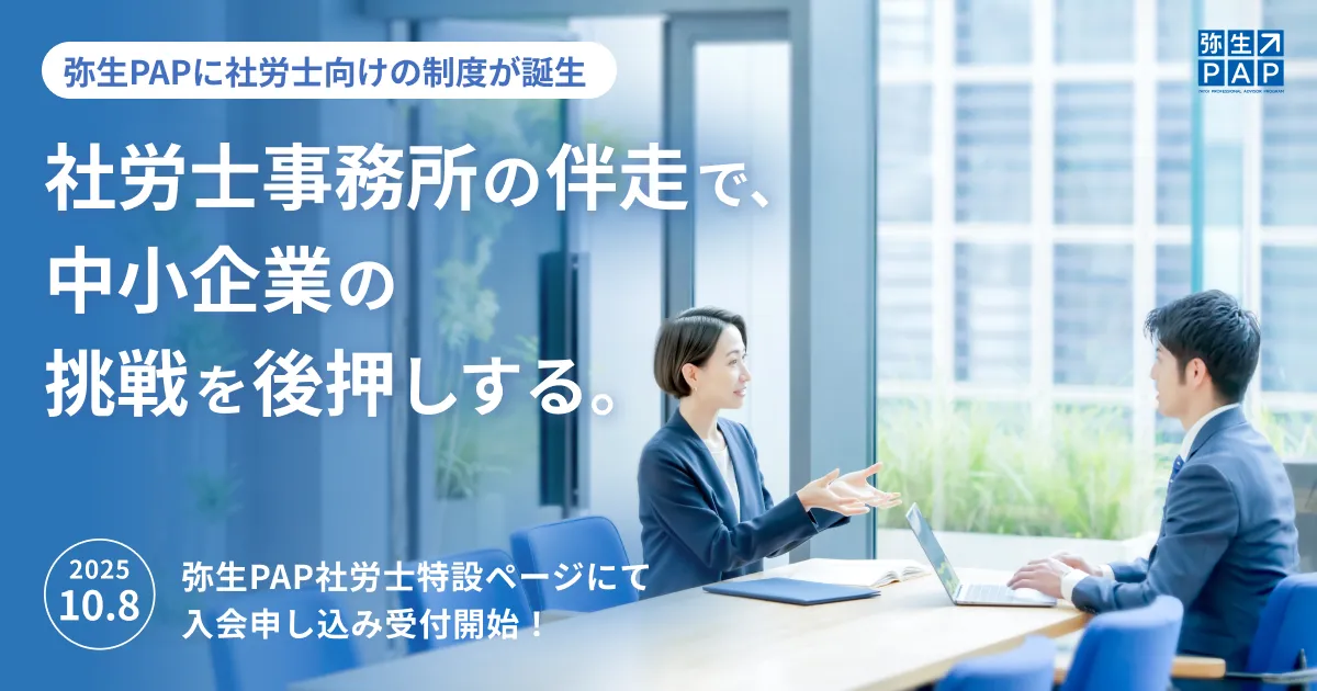 弥生株式会社が社会保険労務士向けの新しい入会区分「弥生PAP社労士」を新設し、会計事務所向けパートナープログラム「弥生PAP」の活動を広げました。この制度の目的は、中小企業への支援をさらに強化することです。