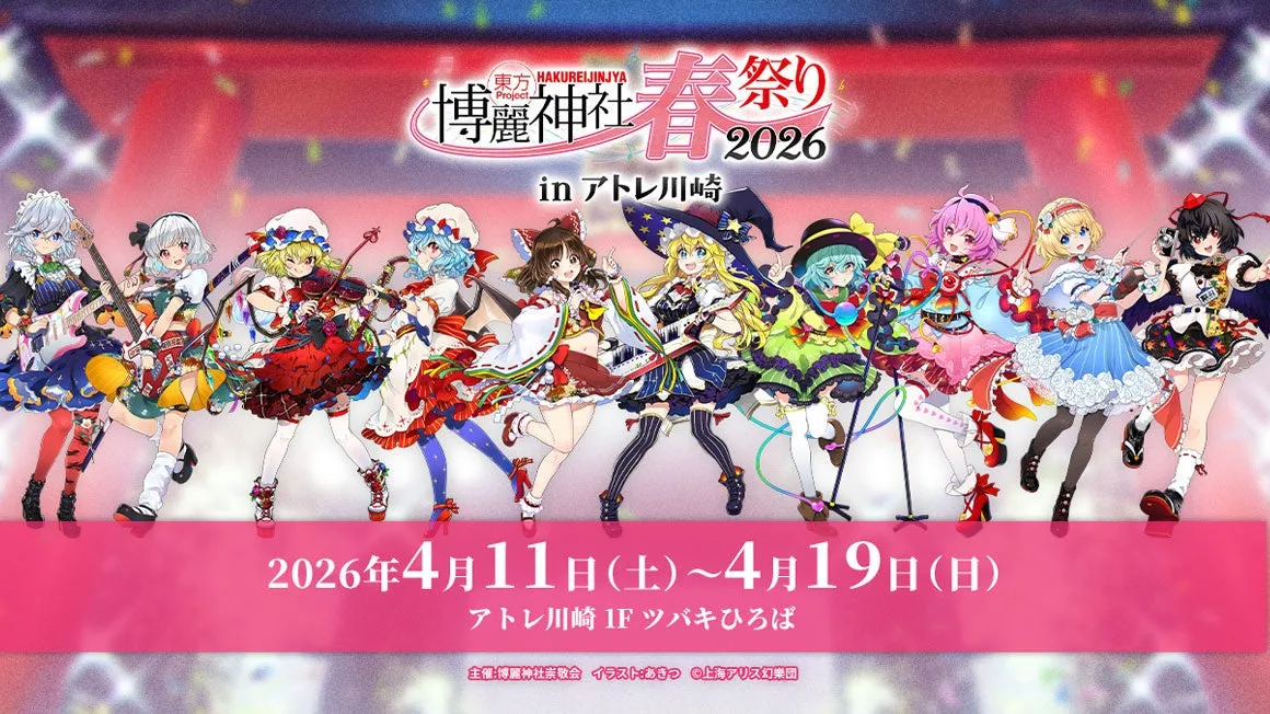2026年4月11日(土)から4月19日(日)までの9日間、川崎のアトレ川崎にて「音楽のまち・かわさき」をテーマにした《東方Project×アトレ川崎「博麗神社~春祭り2026」》が開催されます。このイベントでは、東方Projectの魅力を感じられる展示物販や新作グッズ販売が行われ、入場は無料です。