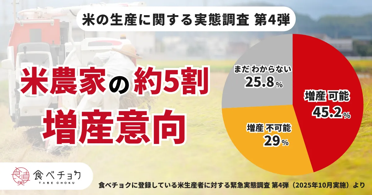 近年、コメ農家の姿が大きく変わりつつあります。株式会社ビビッドガーデンが運営する産直通販サイト「食べチョク」の実態調査によると、コメの増産に前向きな農家の割合は52%に達し、直販に挑戦するコメ農家も前年同期の3.7倍に増加しています。これは、コメ需要の高まりや価格の上昇が背景にあり、農家たちの生産意欲が高まっている証拠です。