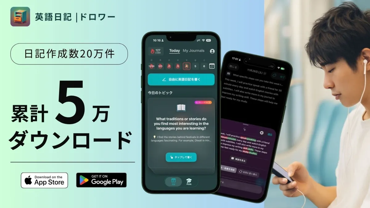 株式会社TORICOが提供するAI英語日記アプリ「ドロワー」が、累計5万ダウンロードを達成した。この数字は、単なるダウンロード数を示すものでなく、実際にユーザーがアプリを活用し、積極的に出力を行っていることを証明している。特に注目すべきは、このアプリ内で累計20万件以上の日記が作成されており、AIを利用した新しい学習スタイルが着実に浸透していることである。