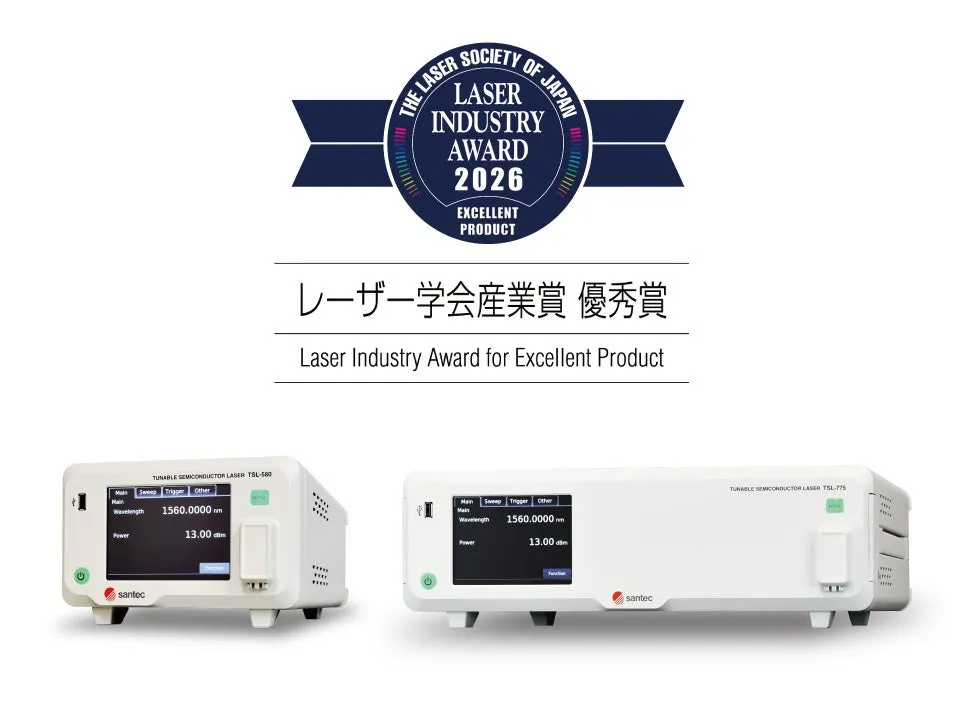 愛知県小牧市に本社を置くSantec LIS株式会社が、外部共振器型波長可変レーザー「TSLシリーズ」で第18回レーザー学会産業賞の優秀賞を受賞しました。この賞は、国内のレーザー産業の発展に寄与した技術や製品に与えられるもので、特に優れたものが選ばれます。