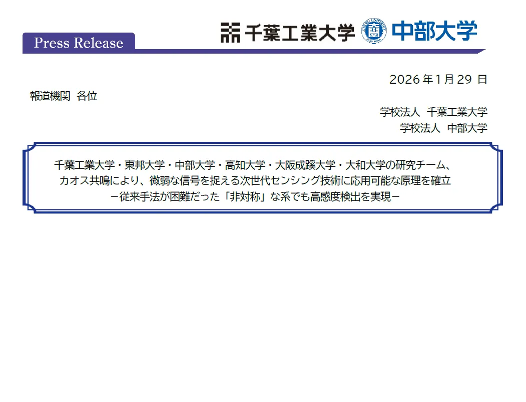 千葉工業大学、東邦大学、中部大学、高知大学、大阪成蹊大学、大和大学の研究チームが、カオス共鳴を利用した新しい制御手法『Double-Gaussian-Asymmetric-filtered Reducing-Region-of-Orbit (DGA-RRO)法』を開発しました。この手法により、非対称環境でも微弱な信号を高感度で検出することが可能となりました。