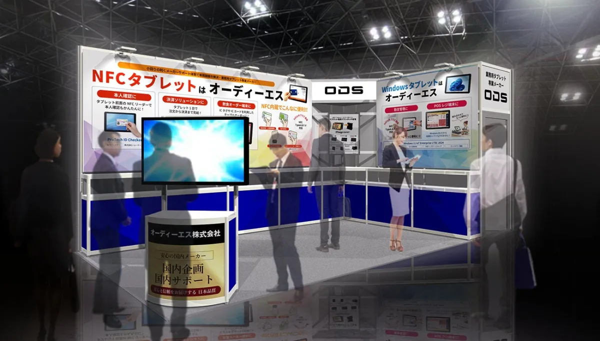 業務用タブレットメーカーのオーディーエス株式会社は、2026年3月3日から6日まで東京ビッグサイトで開催される「第42回流通情報システム総合展 リテールテックJAPAN」に出展します。この展示会では、業務効率の向上や人手不足問題解決のために特化したNFC搭載タブレットを中心に紹介します。