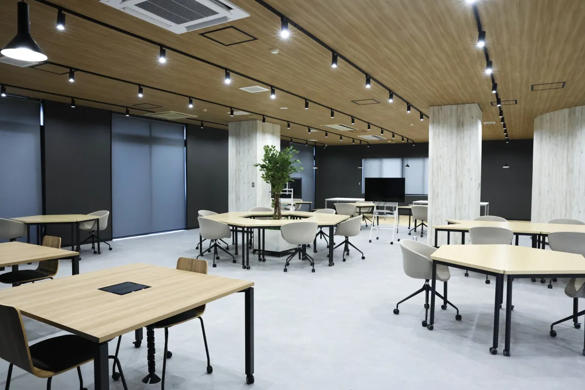 3階のデザイン室は、地元出身のデザイナー鬼澤氏によるもので、「ワクワクする空間×IT」をテーマにして設計されています。このスペースでは、学生の豊かな発想力を引き出すための高い体験価値を提供し、創作活動を促進します。