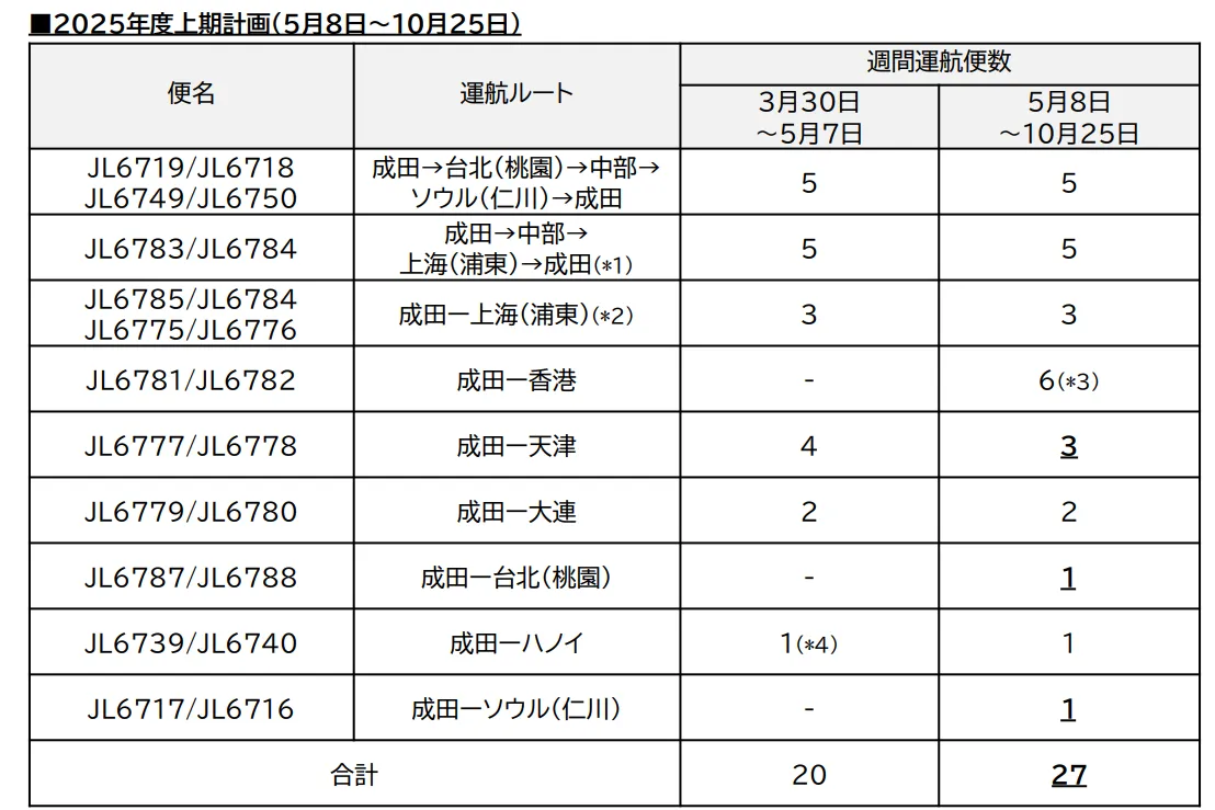 日本航空(JAL)は、2025年度の国際線貨物専用機(フレイター)路線便数計画を更新し、さらなる輸送ネットワークの強化を図ることを発表しました。特に、2025年5月8日以降の詳細に焦点を当て、次のような重要な変更が加えられたことが特徴です。