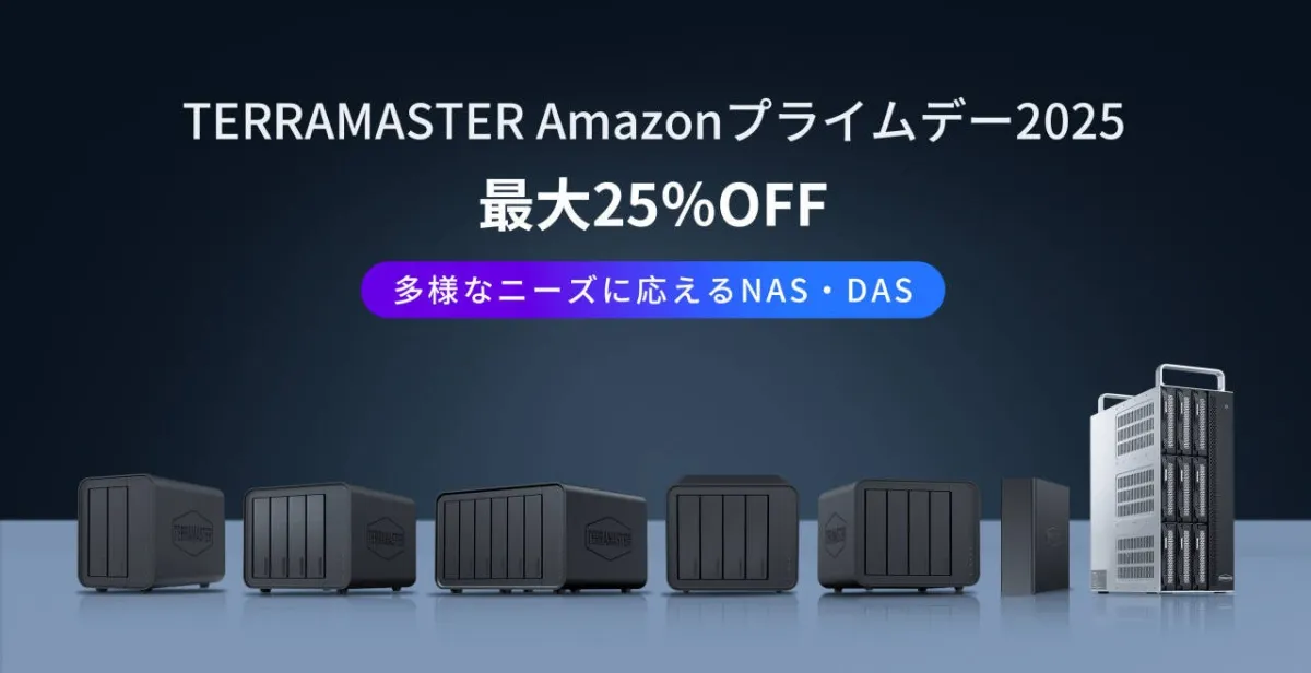 高性能のストレージデバイスを手掛けるTERRAMASTERが、2025年7月11日から14日までの期間に、Amazonプライムデーに合わせた特別セールを実施します。このセールでは、大人気のストレージ製品を対象に最大25%オフで購入できるプランが展開されています。これを機に、デジタルデータの管理やバックアップを見直してはいかがでしょうか。