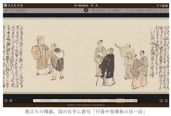 また、鑑賞者は拡大機能を利用して細部を観察したり、特定の場面に対応した絵画を直接開いたりすることもでき、オンラインならではのメリットを最大限に享受できます。最近追加された機能には、詠まれた俳句から関連する絵画の場面を開くことができるオプションも含まれ、ますます多様な楽しみ方が広がっています。