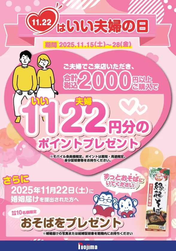 詳しい情報や申し込みは、キャンペーンサイト(https://www.nojima.co.jp/campaign/iifufu1122/)をご覧ください。