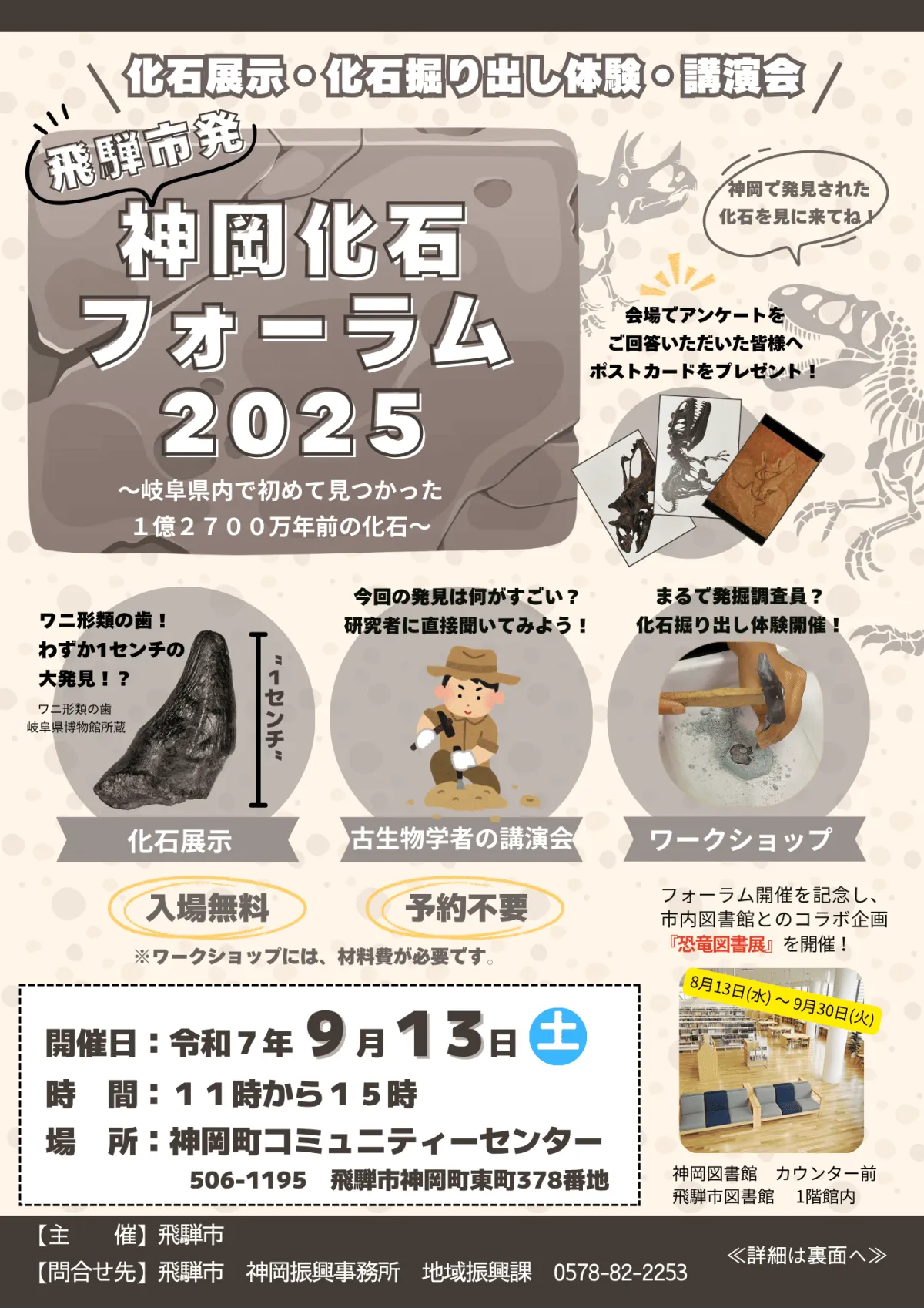 この発見を祝うイベントとして、岐阜県飛騨市では『神岡化石フォーラム2025』を9月13日(土)に開催します。このフォーラムでは、発掘に関わった古生物学者たちが登壇し、専門的な視点からの講演が行われます。
