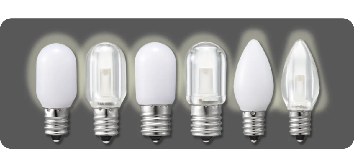 発売されたLEDナツメ球は、E12型とE17型の異なるサイズがあり、各型にホワイトとクリアの2つのバリエーションが用意されています。具体的には、以下の型番があります: