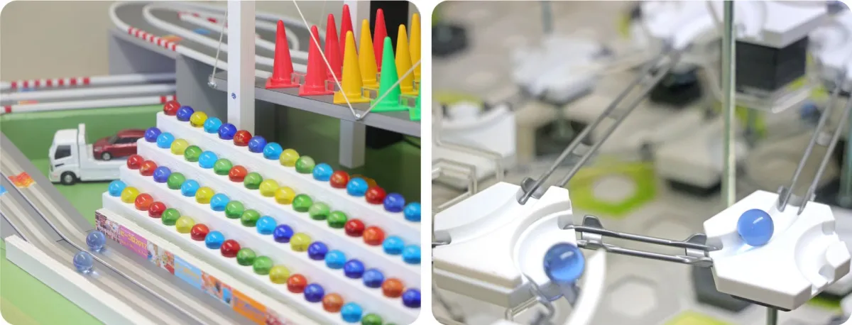 この展覧会の目玉となるのが、宇宙科学館の職員が工夫を凝らして制作した「ビーコロ装置」です。約20台の新作が展示されており、自分で入れたビー玉がどのように動くかを観察することができます。その動きには物理の法則が隠れていて、まるで魔法のような体験ができるでしょう。ビー玉はスタッフが常に配布しており、何度でも楽しむことができるので、家族での訪問にも最適です。