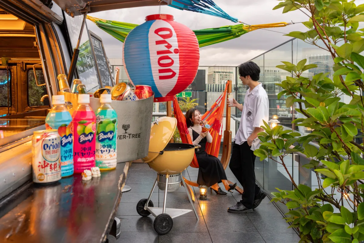 この夏、屋上バー『Roof Dogs』では、アメリカのグリルブランド『Weber』とドイツのハンモックブランド『LA SIESTA』がコラボレーションした“BBQ Open Garage – The Box of Wonders”が登場。沖縄の夏をテーマにしたビアガーデンでは、心地良い開放感を感じられるオープンエアの空間にカラフルな提灯が飾られ、沖縄民謡や波音に包まれながら、特別な時間を過ごせます。