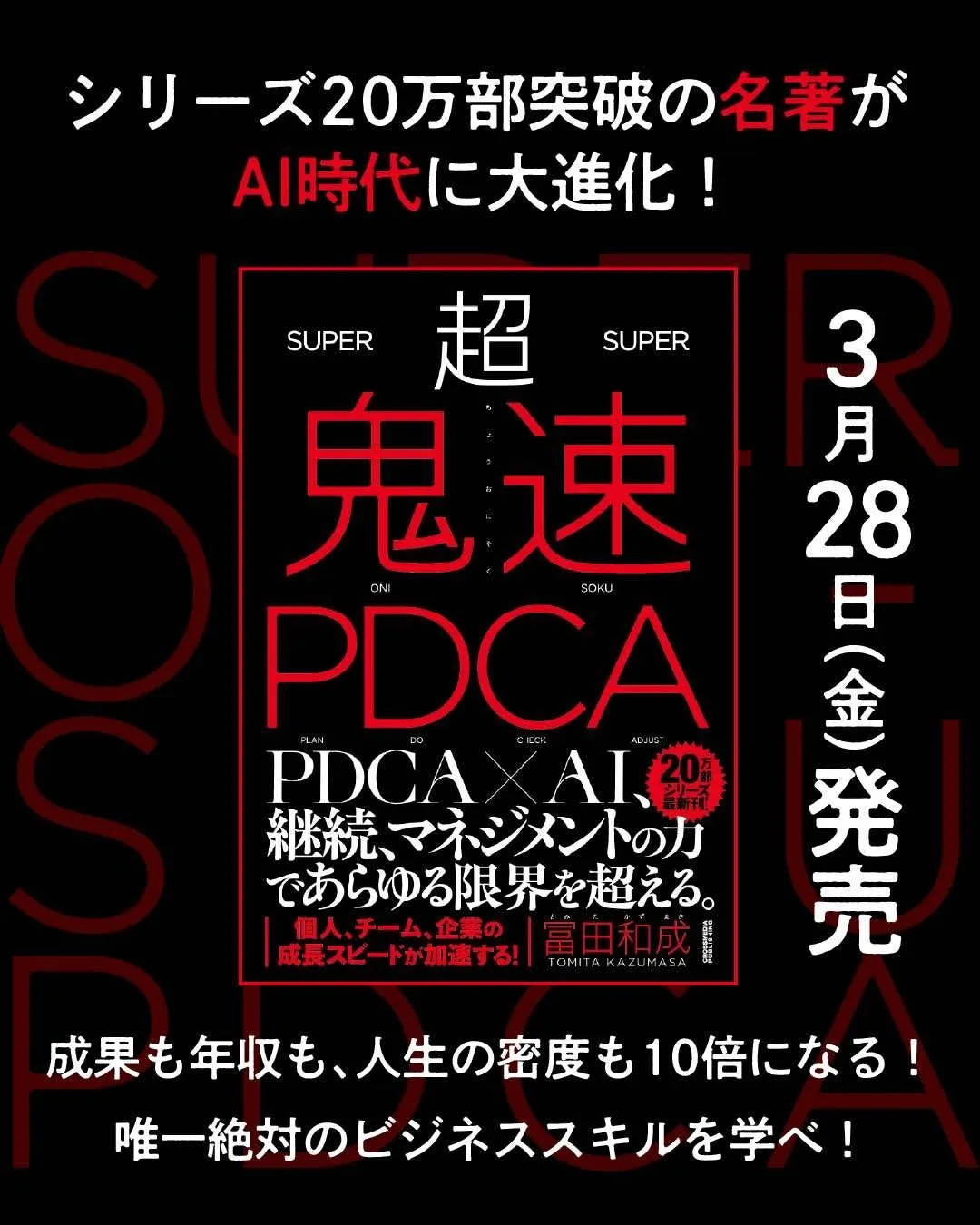 2025年3月28日、株式会社ZUUの代表取締役である冨田和成氏の新著『超鬼速PDCA』が発売されます。この本は、累計20万部のロングセラー『鬼速PDCA』の進化版として登場し、特にAI時代に対応した内容となっています。読者はこの書を通じて、単なる知識を超え、実践的なビジネススキルを身に付けることができるでしょう。