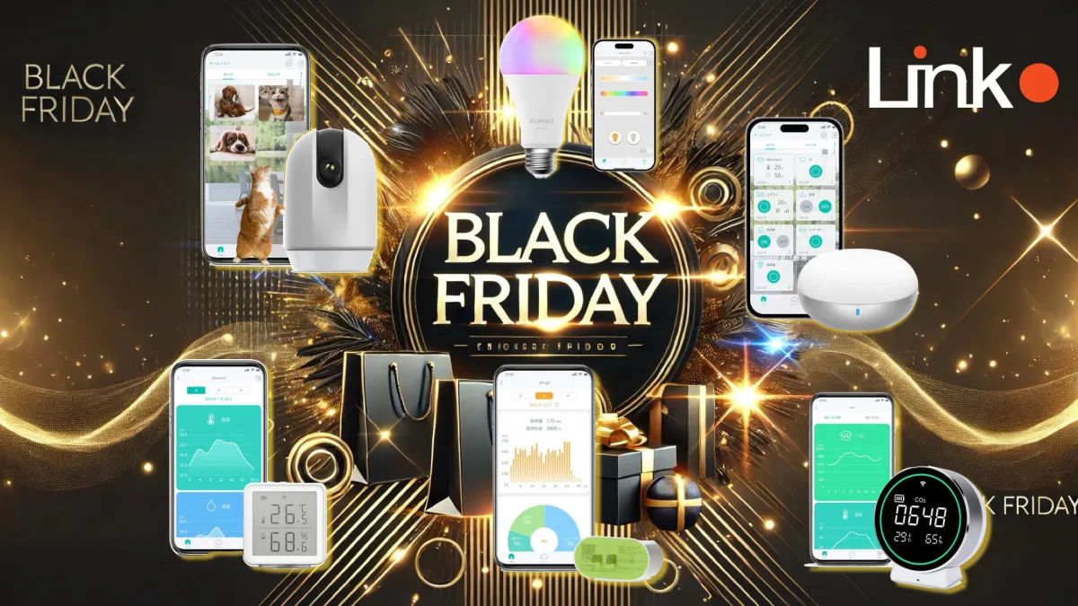 今年もやって来ました、年に一度の特大セール、Amazonブラックフライデー!期間は11月29日(金)から12月6日(金)までの7日間。この期間中、リンクジャパンのスマートホーム製品が、驚くべき価格で手に入るチャンスが到来します。人気のスマートホーム統合アプリ「HomeLink」に対応した多彩な製品が登場します。