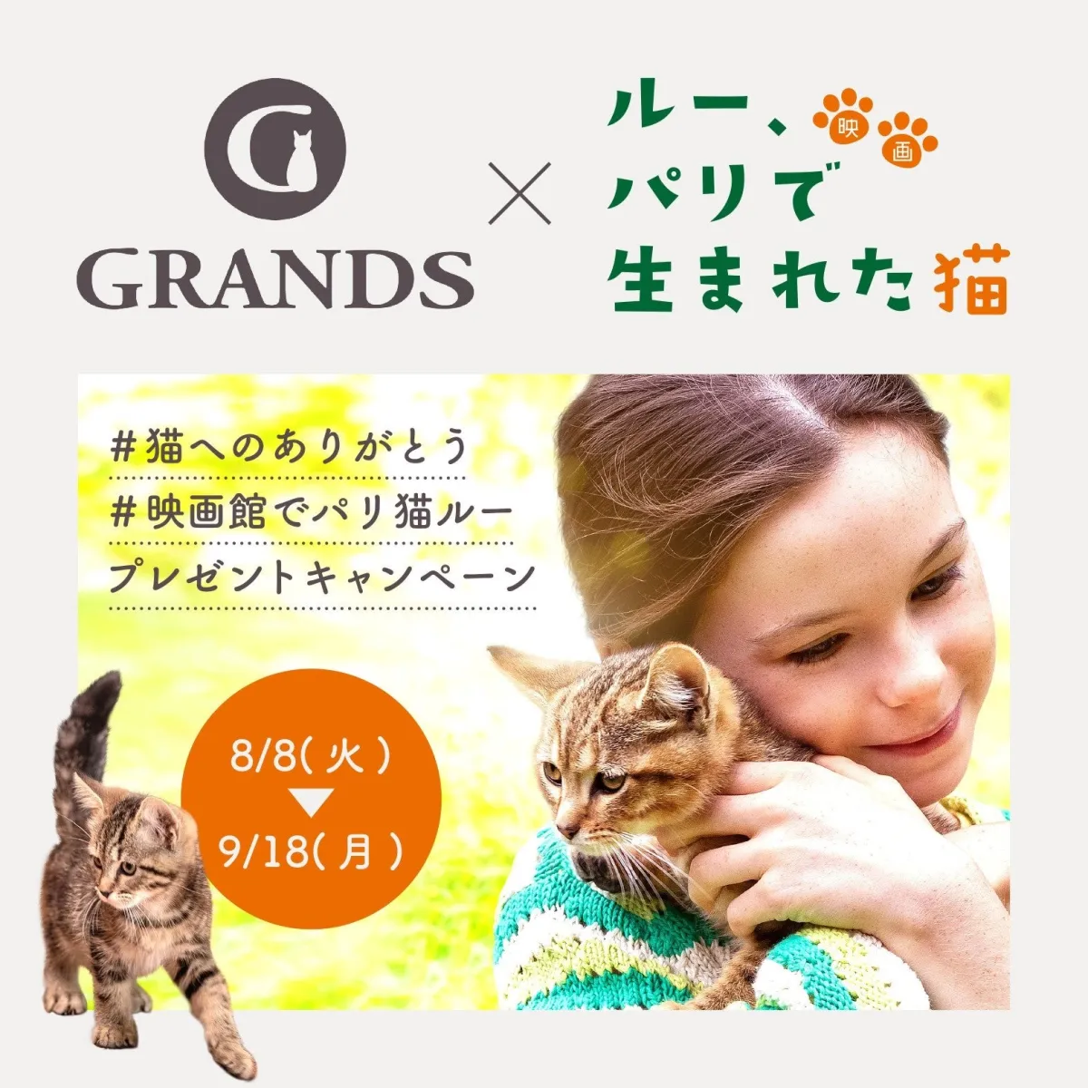 フランスで生まれたGRANDSプレミアムキャットフードと映画『ルー、パリで生まれた猫』がコラボレーションしたキャンペーンが、2023年8月8日から9月18日までの期間限定で実施されています。このキャンペーンでは、猫を愛する方々にぴったりの素敵な賞品が用意されています。