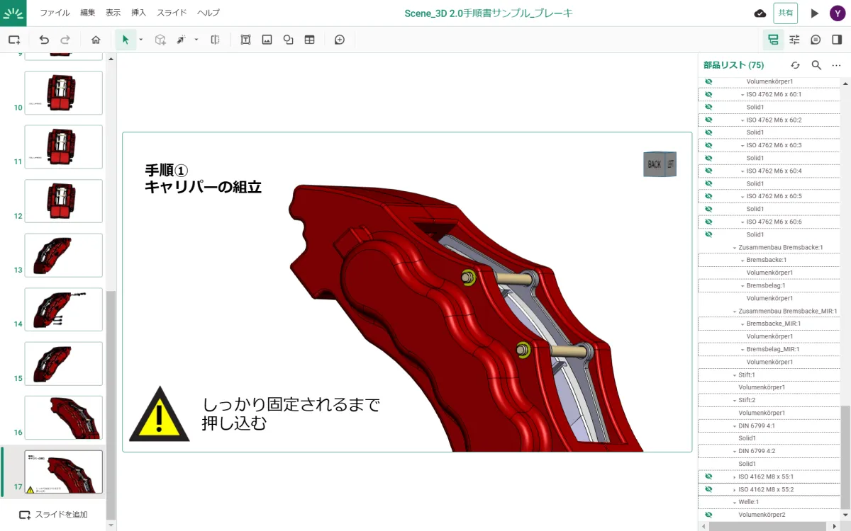直感的な3Dアニメーション作成:鮮明な解像度でリアルな3Dアニメーションを手軽に作成でき、特に経験の浅い方でも理解しやすい資料ができます。