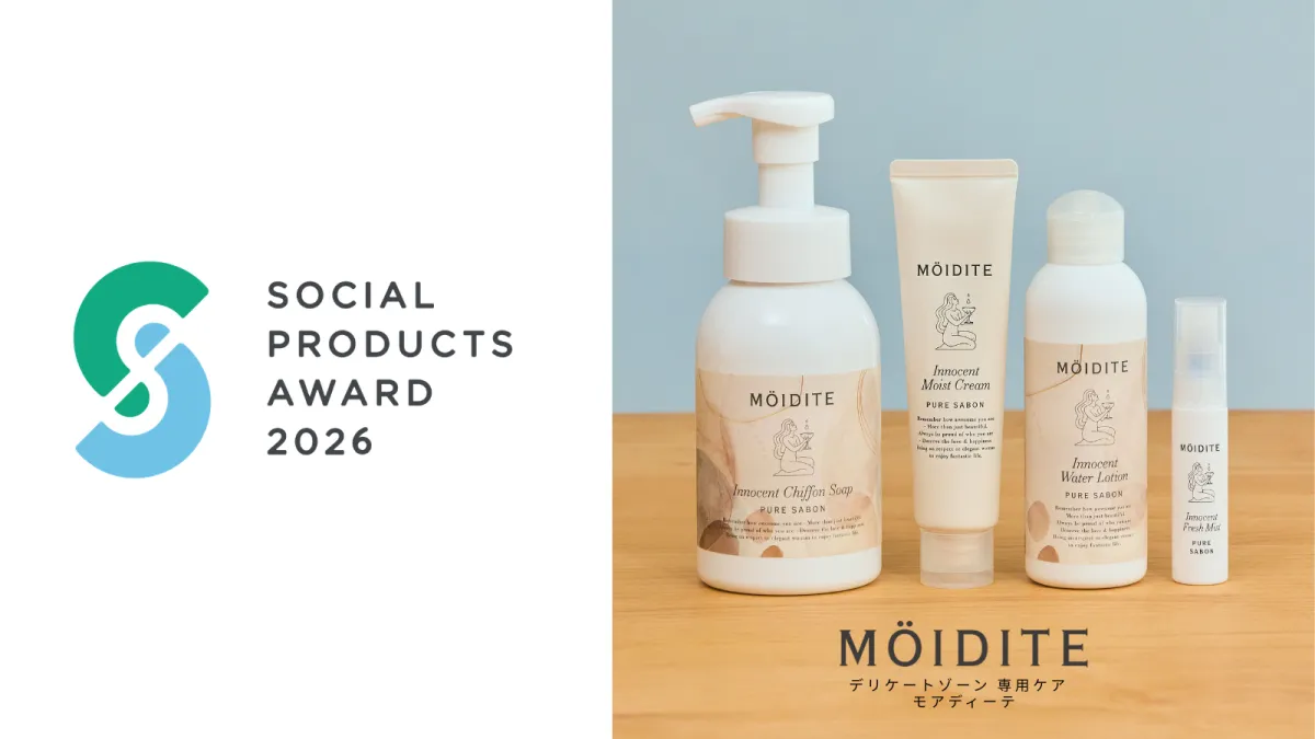 デリケートゾーンケアブランド『MOIDITE(モアディーテ)』が、最近注目の「ソーシャルプロダクツ・アワード2026」で「ソーシャルプロダクツ賞」を獲得しました。この賞は、社会的責任を持ちながらも、商品としてのクオリティも高いものに贈られるもので、MOIDITEはその両方で評価されたことを意味しています。