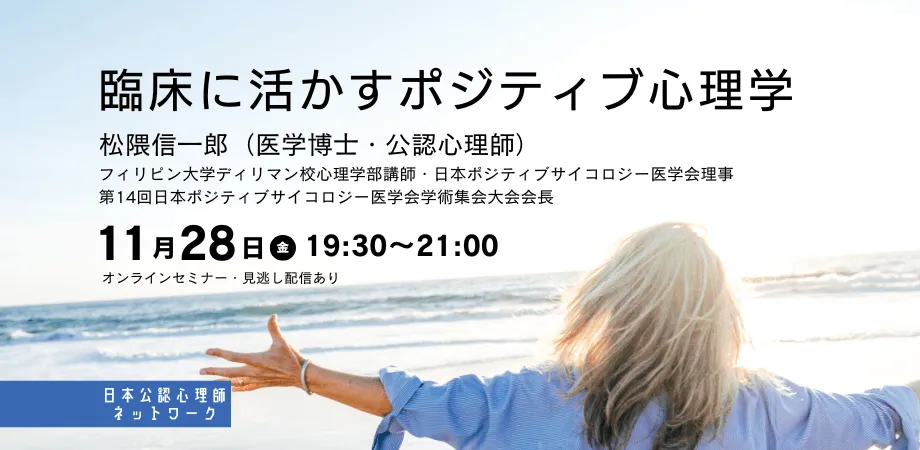 2025年11月28日、19時30分からの約1時間半、オンラインにて開催されるセミナー『臨床に活かすポジティブ心理学』が注目されています。主催は、日本公認心理師ネットワークで、近年その重要性が増しているポジティブ心理学に関する内容が盛り込まれています。