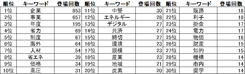 分析にあたっては、件名に含まれる名詞キーワードの登場回数をもとにランキングが作成されました。以下は頻出キーワードの一部です:
