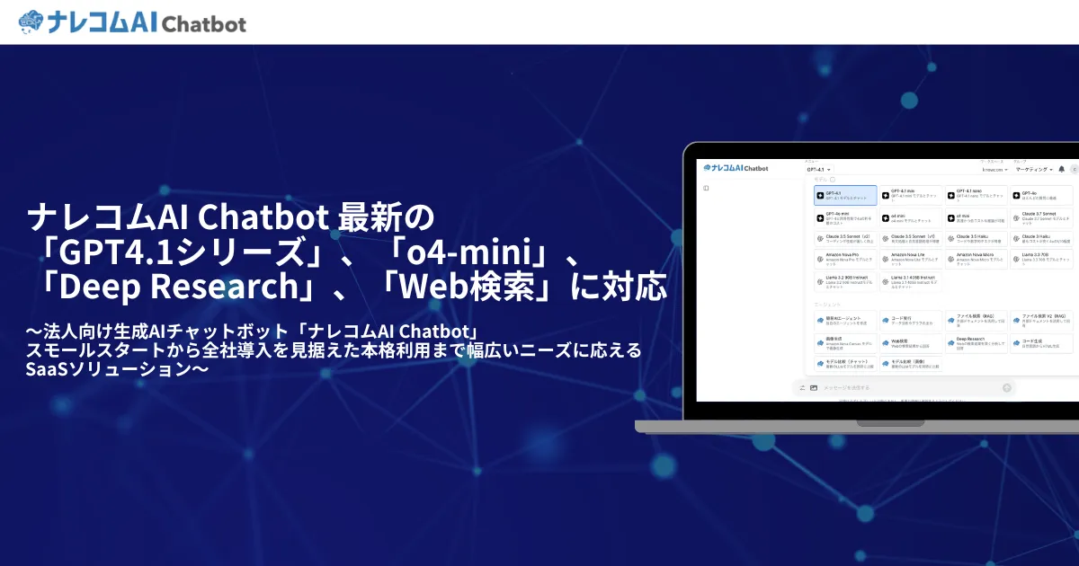 株式会社ナレッジコミュニケーションは、千葉県市川市に本社を置く企業で、最新の生成AIモデルを活用したプラットフォーム「ナレコムAI Chatbot」の進化について発表しました。最新の「GPT-4.1シリーズ」や「o4-mini」に加え、Deep ResearchとWeb検索の新機能が実装され、業務の生産性向上が期待されています。