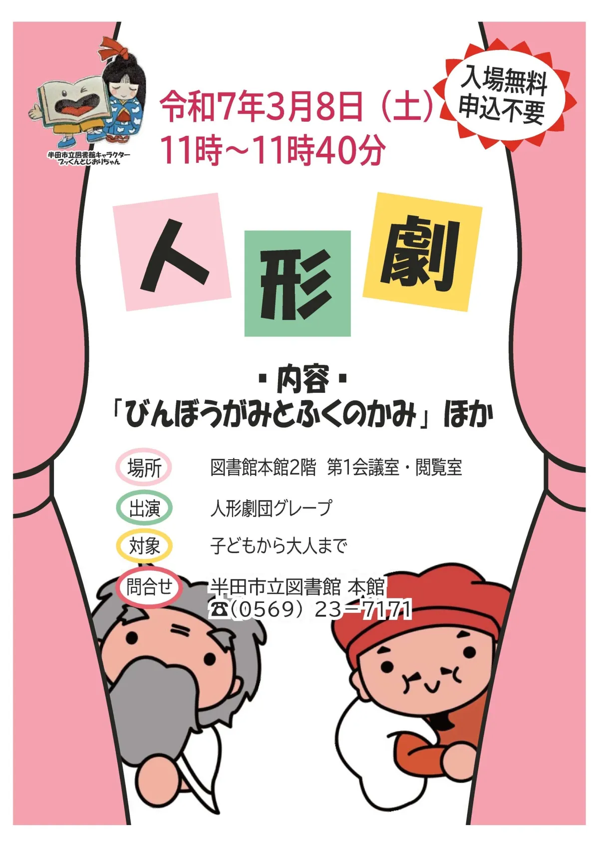 2023年3月8日(土)、愛知県半田市に位置する半田市立図書館にて、子どもたちに人気のあるお話を題材にした人形劇とパネルシアターが上演されます!このイベントは、幼児や低学年の小学生を対象としており、ご家族そろって楽しめる内容となっています。